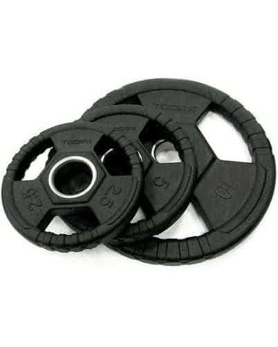 Vinderen i kategorien “bedste vægtskiver” er fra Tunturi. Vil du gerne op i 50 mm skiver, er denne model den bedste af slagsen. Udover at være skånsomme mod gulv har skiverne også standard huldiameter på 50 mm.