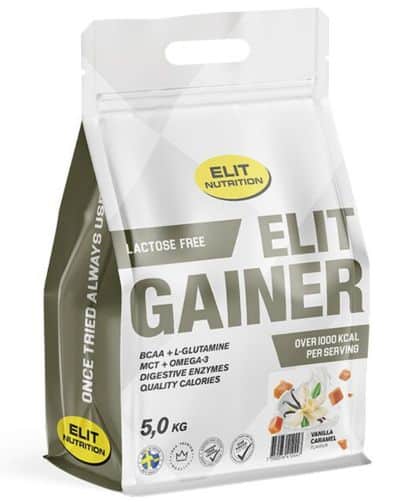 ELIT GAINER fra Elit Nutrition er en god løsning for dem, der vil øge vægten uden at gå på kompromis med kvaliteten. Med over 1.000 kcal pr. portion indeholder gaineren mange komplekse kulhydrater og protein fra valle og mælkeproteinisolat. Fordøjelsesenzymerne hjælper med at optage næringsstoffer optimalt. BCAA og L-glutamin støtter muskelrestitution og -vækst. At produktet er laktosefrit er en fordel for laktoseintolerante. MCT-fedtsyrer og omega-3 bidrager til en balanceret kost. Den naturlige frugt- og bærblanding giver en god smag og tilføjer næringsstoffer.